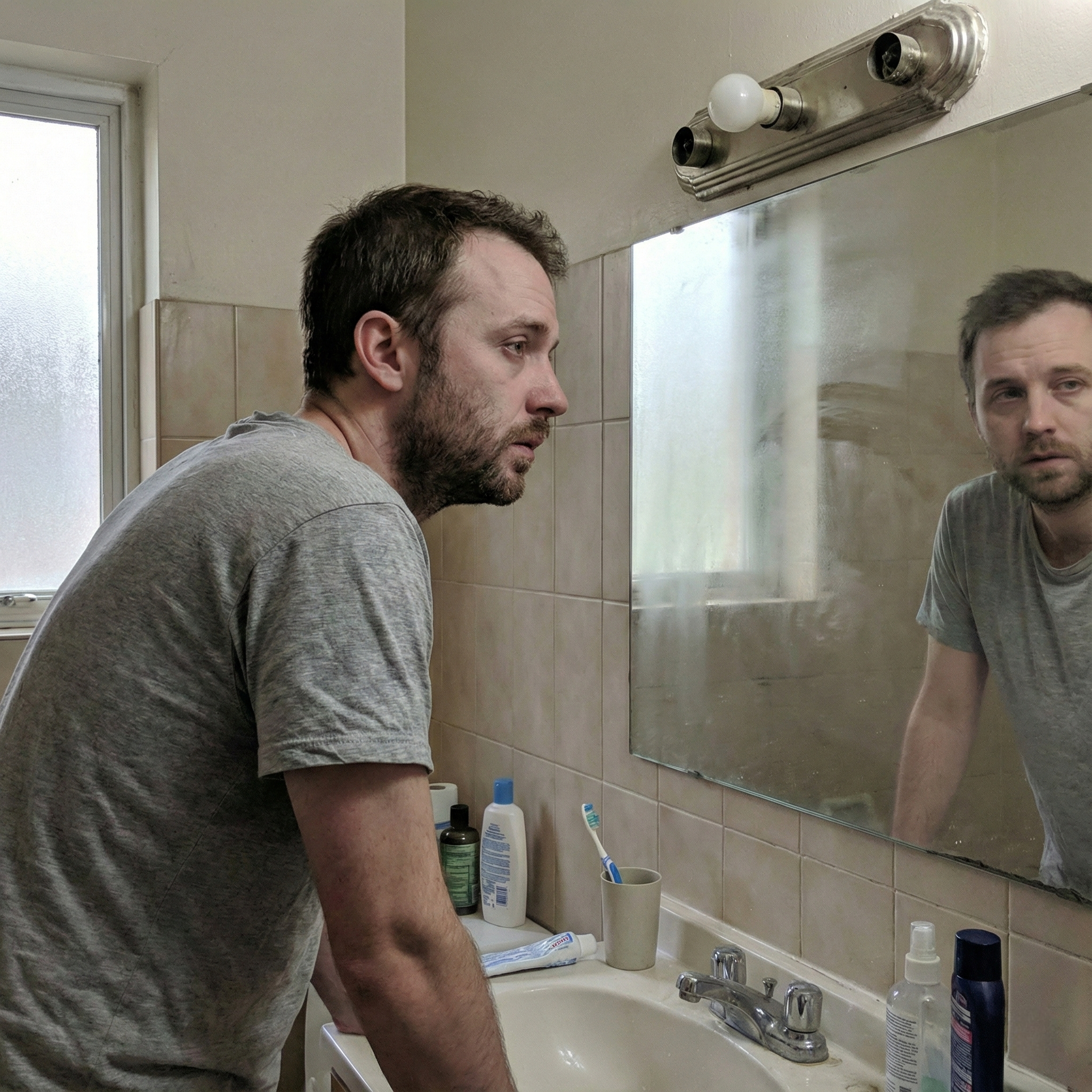 Ryan M. / 29y 2 DEC. 2025Verified BuyerThe mirror doesn't scare me anymore."I used to rush past the mirror every morning. Couldn't look at myself without that voice starting. Now I stop. I see those words and something in my brain pauses. It's not like I suddenly love myself. But I don't hate what I see as much."